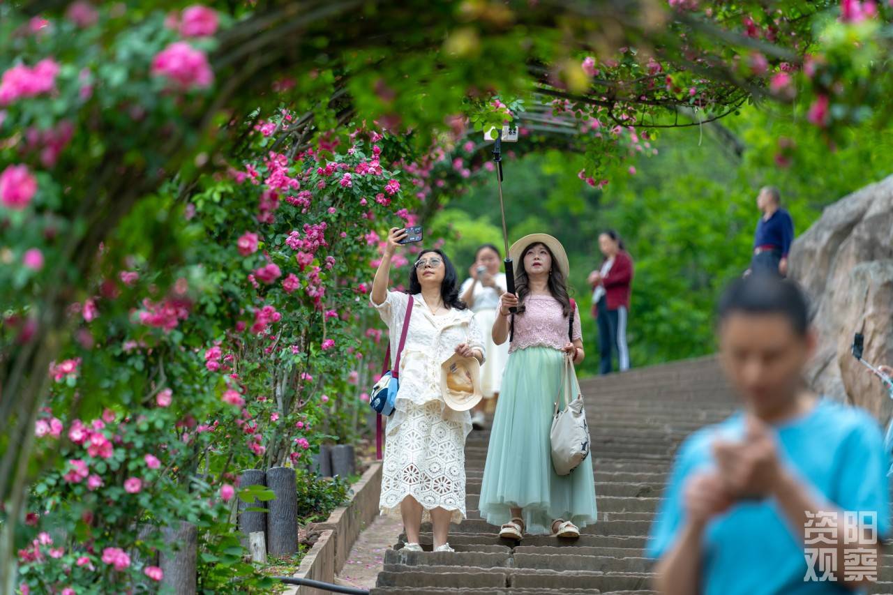 暮春时节,资阳市字库山公园玫瑰园迎来最美花期。连日来,园内各色玫瑰竞相绽放,红的热烈、粉的娇嫩、白的雅致,层层叠叠的花瓣与翠绿枝叶相映成趣,勾勒出一幅生机盎然的春日画卷,作为资阳城区重要的生态休闲地标,字库山公园近年来通过“增花添彩”工程不断优化景观布局,玫瑰园已成为春季最具人气的打卡点之一。吸引大批市民游客慕名打卡,共赴“玫瑰之约”。(秦建华 摄)