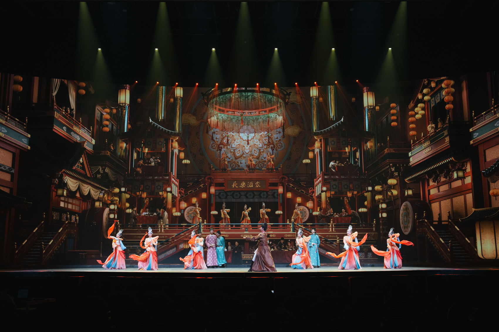 《寻找李白》以李白好友元丹丘为赴中秋之约,前往长安寻找李白途中经历的冒险为主线。在演出过程中,专业人员化身“李白”及盛唐人士,以生动的肢体语言与剧情演绎,和观众一同开启诗意冒险。项目还结合大型垂吊特技装置,视觉化呈现千古名篇《将进酒》,使游客在虚实交融的场景中深入体会诗人的内心世界,感受中华诗词的深厚魅力。