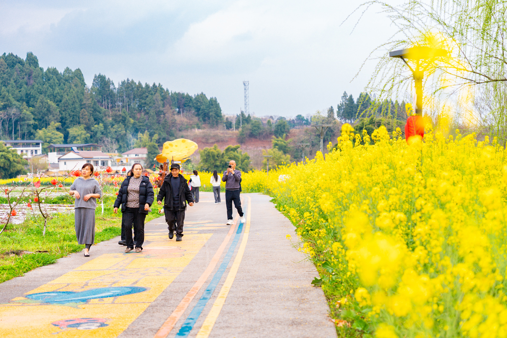 漫步村道,花香拂面,田园与艺术在此相融,不少市民游客前来踏青赏花、拍照打卡,尽享春日慢时光。依托“艺术+乡村”特色,红碑村成为近郊休闲游好去处,生动展现和美乡村新风貌。