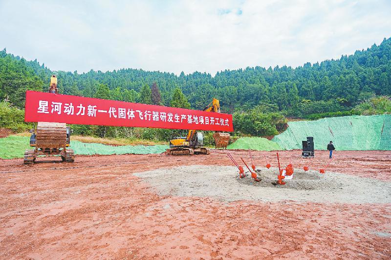 资阳发展集团引进高仙机器人、星河动力等重大产业项目。图为星河动力新一代固体飞行器研发生产基地项目开工仪式现场。