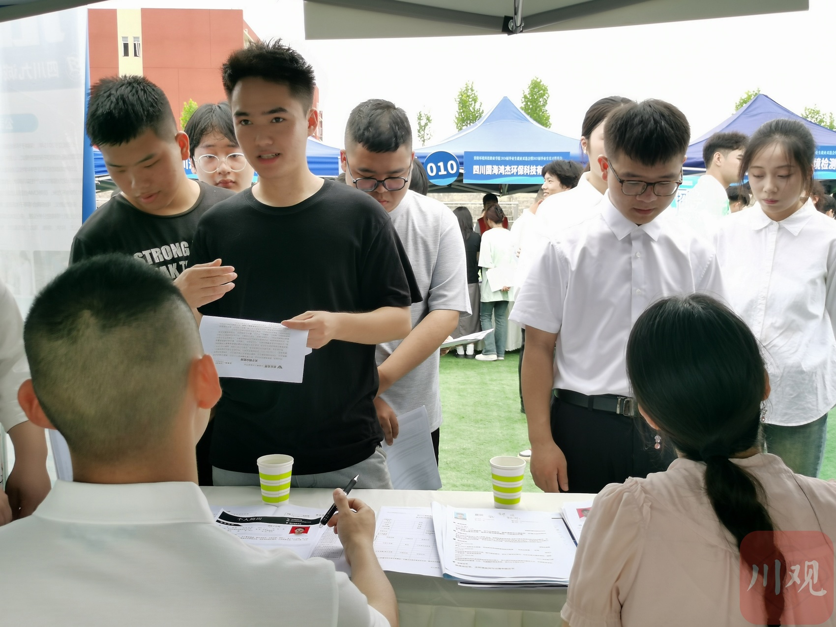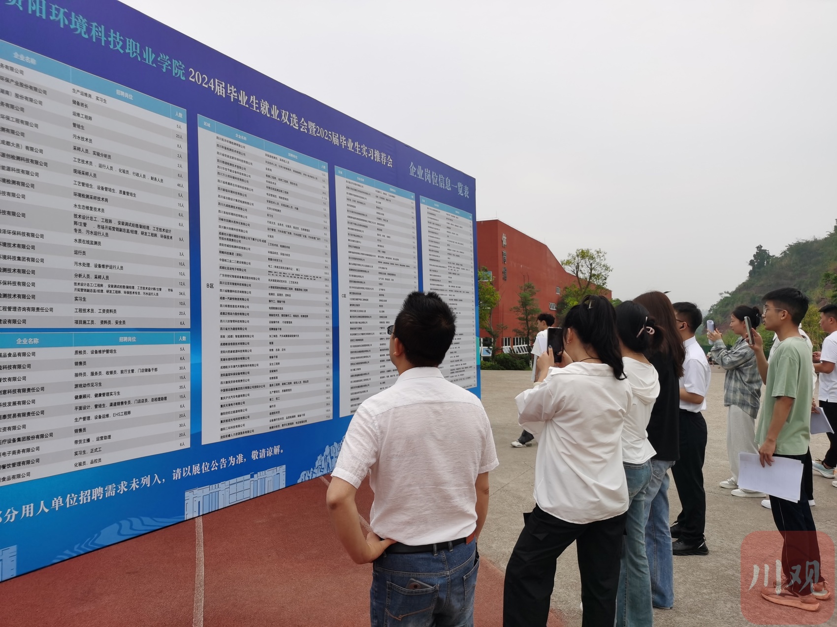梁羽是资阳环境科技职业学院环境监测技术专业的学生,他的求职意向是实验分析员。当天,他早早地来到了活动现场,在企业岗位信息一览表处,梁羽筛选出6家意向单位,涉及实验分析和化学分析方向。记录好公司名称及所在展区,梁羽便带着简历直奔岗位而去。
