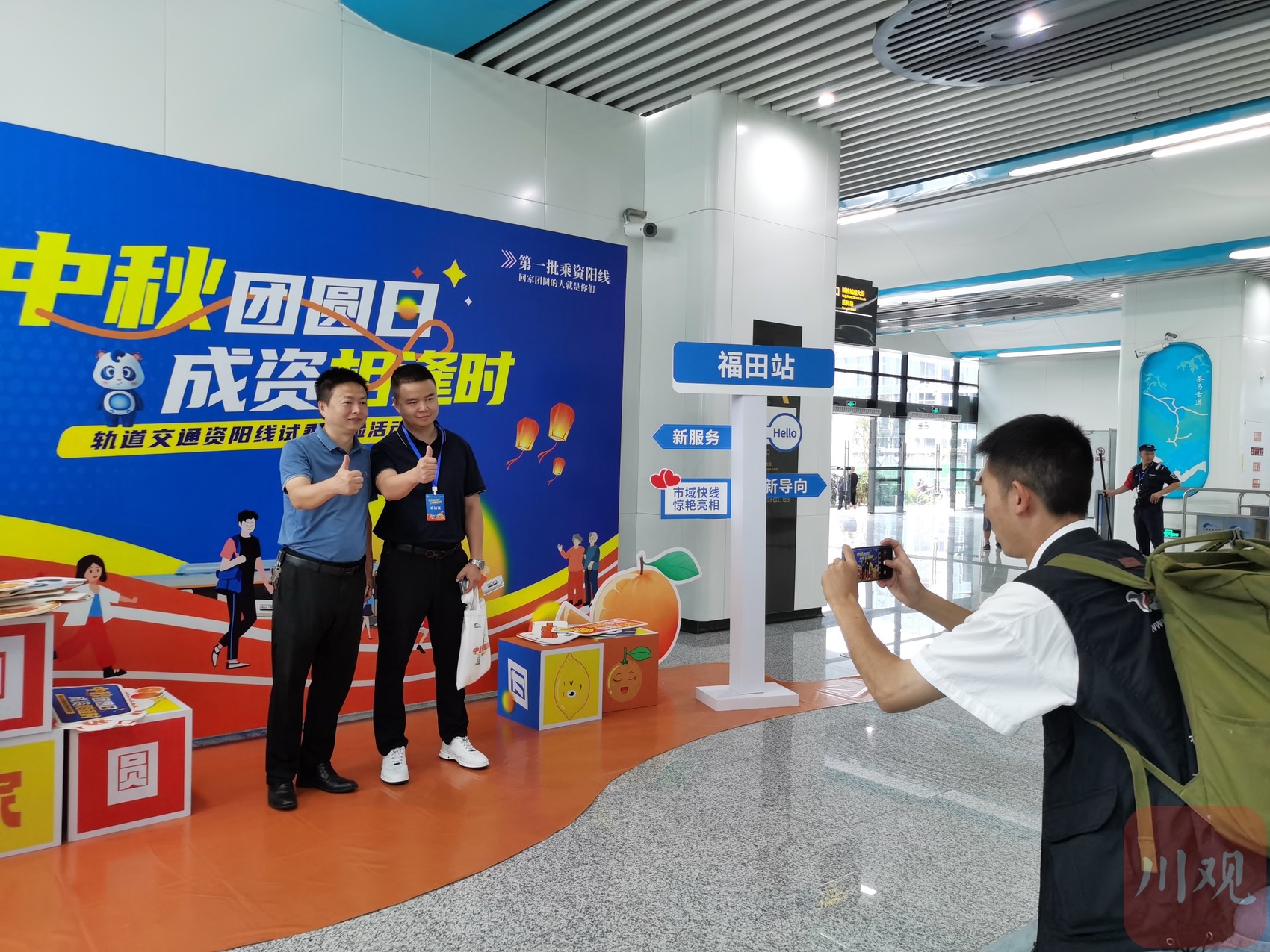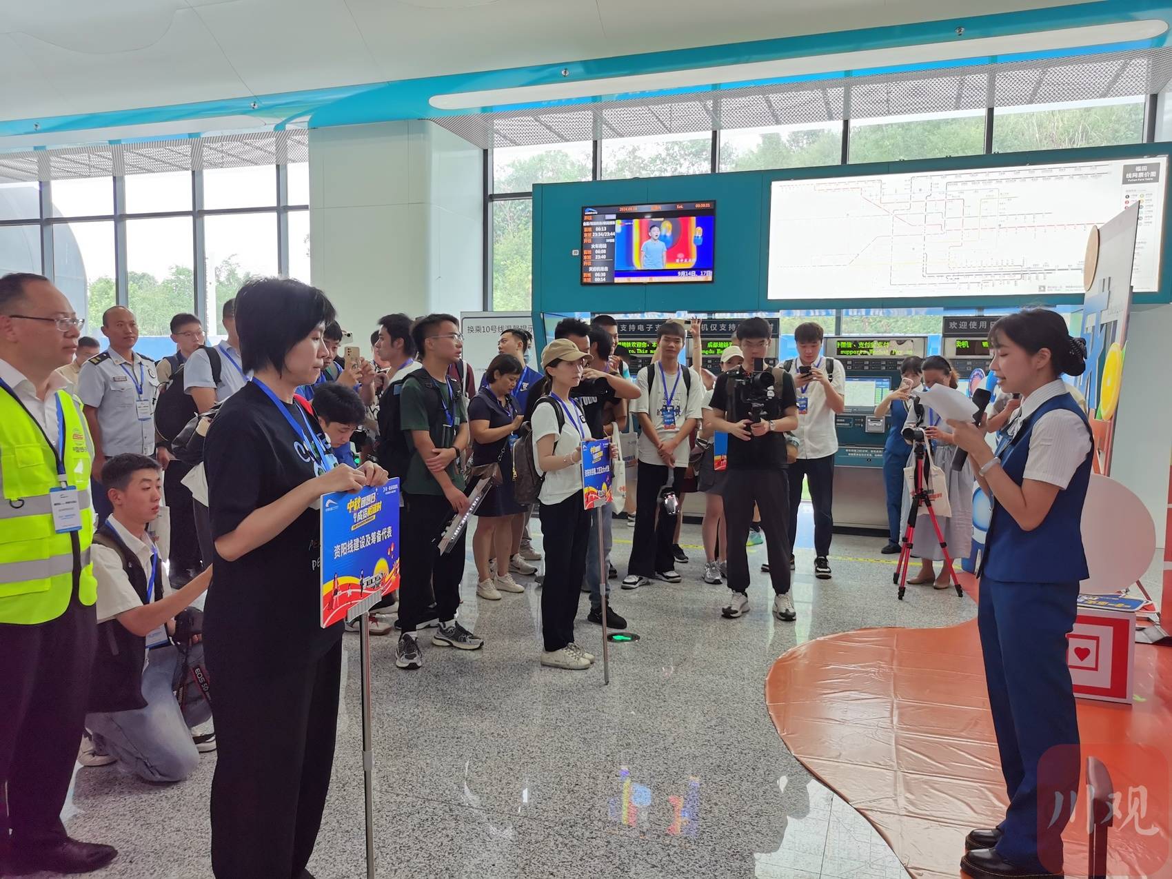 当天,在轨道交通资阳线正式通车之前,来自成都、资阳两地的80余名市民代表作为首批乘客,从成都福田站出发,前往资阳临空站和幸福大道站,并参观了临空车辆段、体验幸福大道站运营服务,开启了四川省首条跨市域轨道交通线路的“初体验”。