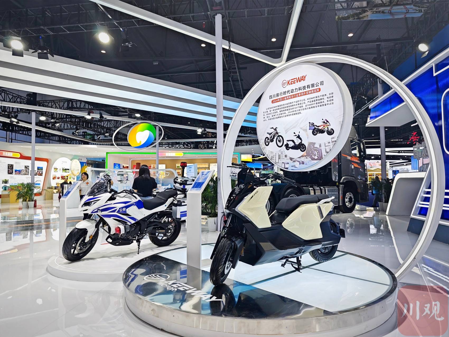 四川易行时代动力科技有限公司就是参展的企业之一。今年是该公司第二次参加西博会,相较于第一次的图片展出,这次他们带来了三款不同的摩托车。“这一款T06电动摩托车是警民两用,续航里程最高可以达到150公里,填补了国内电摩高续航里程性能空白。”公司副总经理张勇指着展台上一辆灰白相间的电摩介绍,今年一季度,公司海外订单产值已经达到3.5亿元,出口份额占据四川两轮车出口的78%,今年的目标是力争突破10亿元。