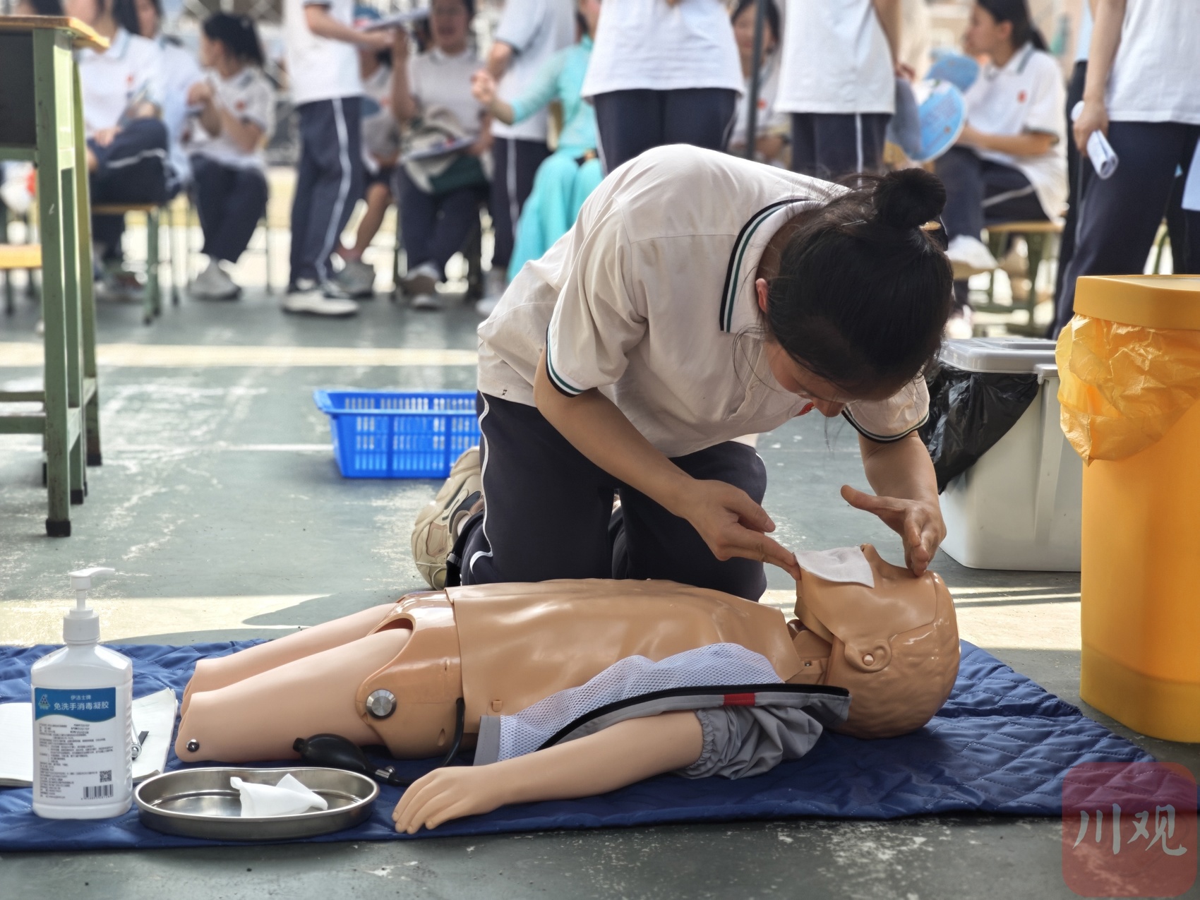 “保持呼吸道通畅,建立人工呼吸……”在操场另一侧,幼儿保育专业学生幼儿照护技能赛如火如荼。“我们各专业的老师利用课余时间自发组建了一个学习工作室,给学生进行‘1+x’幼儿照护职业技能辅导,前三期培训人数达800人,其中,第二、三期的过关率均为100%。”幼儿保育大专班教师刘丽介绍,职教学生掌握一门专业技能,能够大大提升他们在社会上的生存能力。