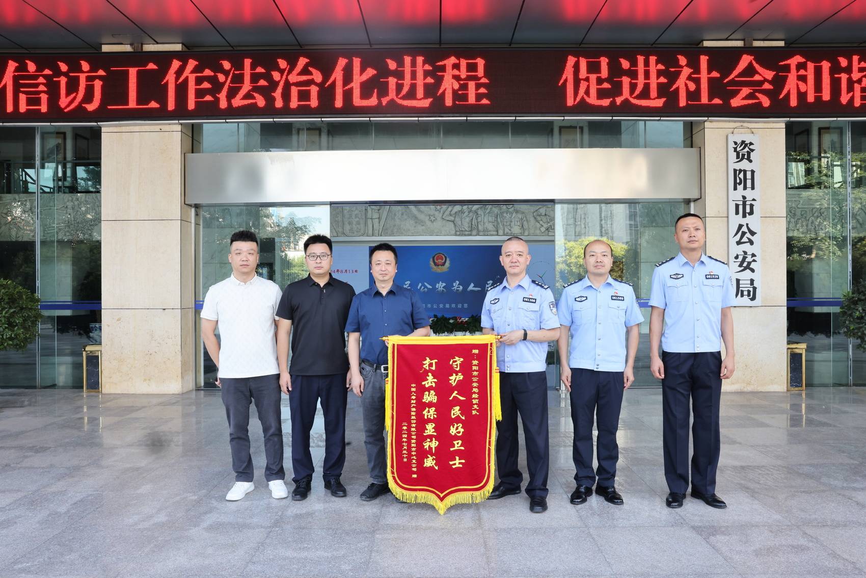 近日,资阳市公安局收到中国人寿财产保险股份有限公司资阳市中心支公司(以下简称资阳支公司)送来的一面锦旗:“守护人民好卫士 打击骗保显神威”,以此感谢公安机关重拳打击骗保犯罪,维护企业合法权益。