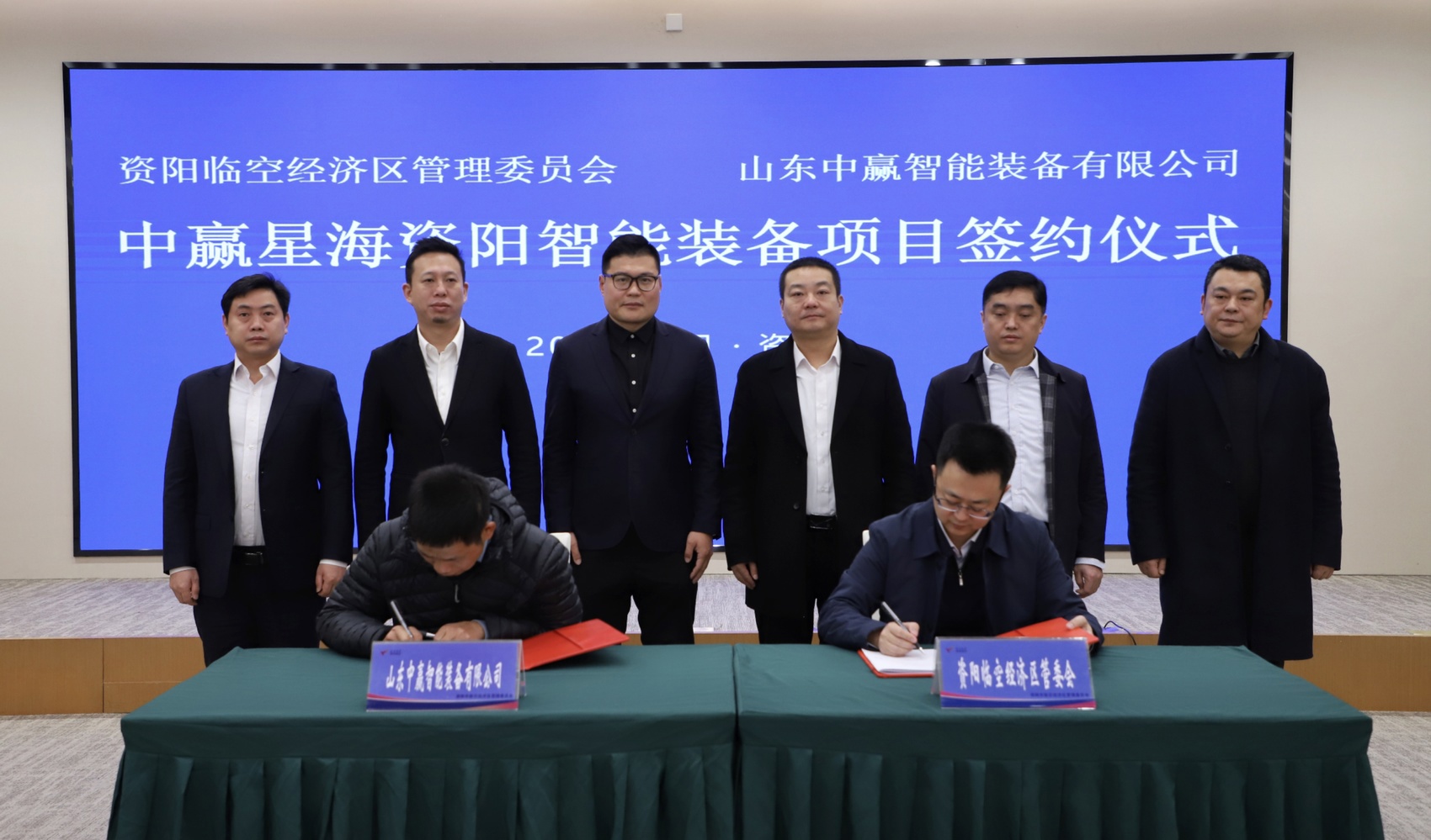 1月17日,资阳临空经济区举行山东中赢星海资阳智能装备项目签约仪式,开启新年招商引资新篇章。