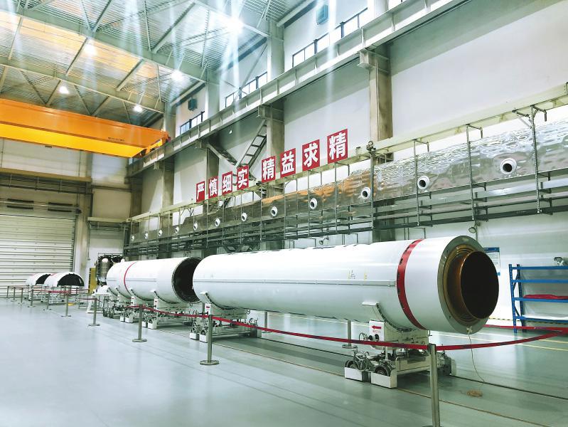 “资阳造”首枚商业运载火箭从四川星河动力空间科技有限公司飞行器总装制造基地下线。韩成玺 摄