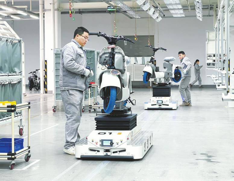 2月6日一早,当记者走进厂房时,在AGV(自动引导运输车)智能生产线上,造型小巧的两轮摩托车正在紧张装配中。这批200多台两轮摩托车是春节前接到的海外客户订单,很快将通过江海联运的方式出口到韩国。而另一条生产线上,正同步生产日本客户订购的2000多台摩托车。
