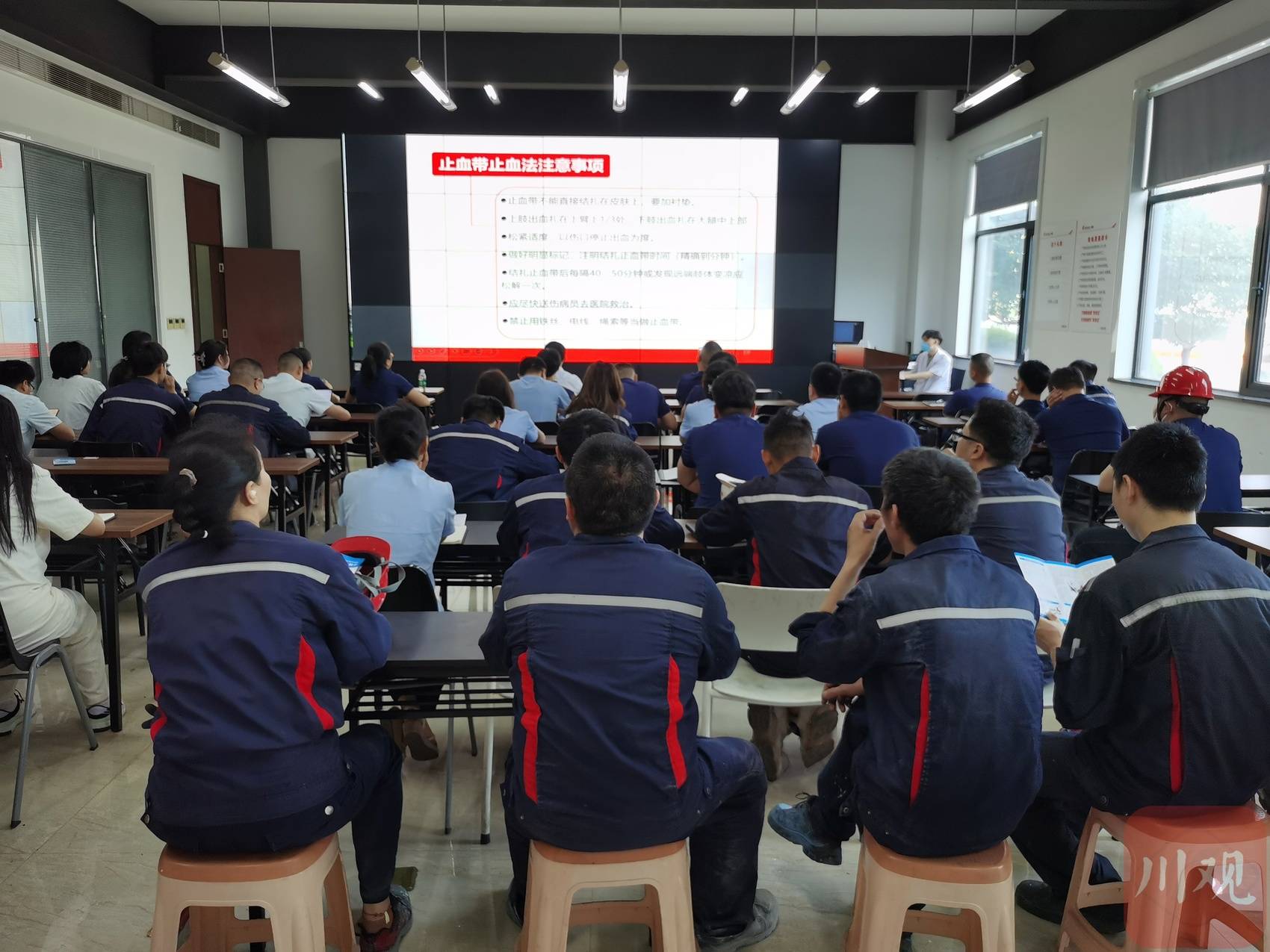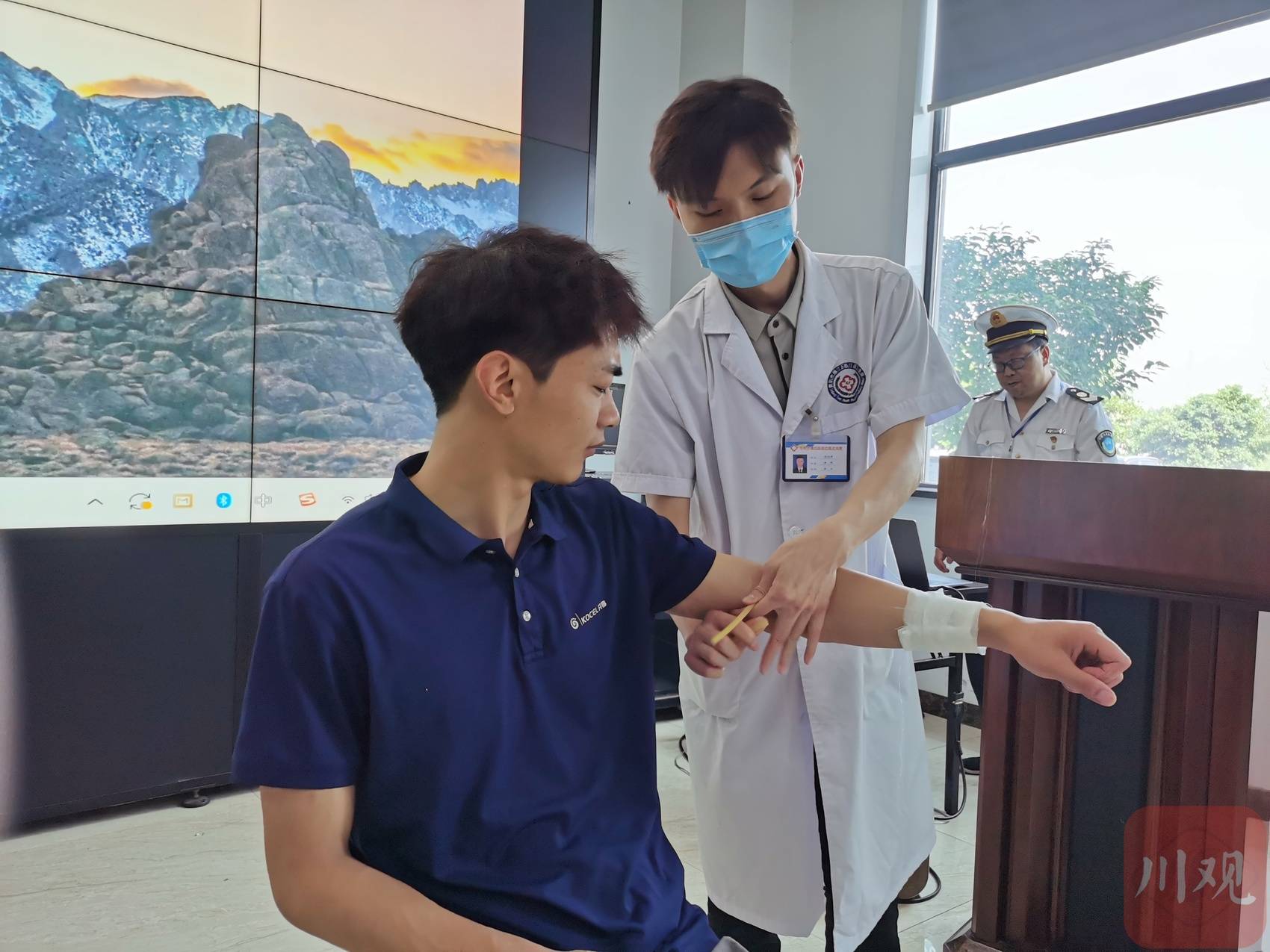 在当天的定制化服务中,“健康服务团”通过“理论授课+现场教学”模式,为企业开展急救技能实训、职业病防护示范和职工心理疏导。四川共享铸造有限公司安全专员潘缉文现场体验止血急救处理和包扎操作后感慨:“专家把复杂的急救知识转化为易懂口诀,还结合公司职业特点开展对应培训,这种服务既专业又贴心。”