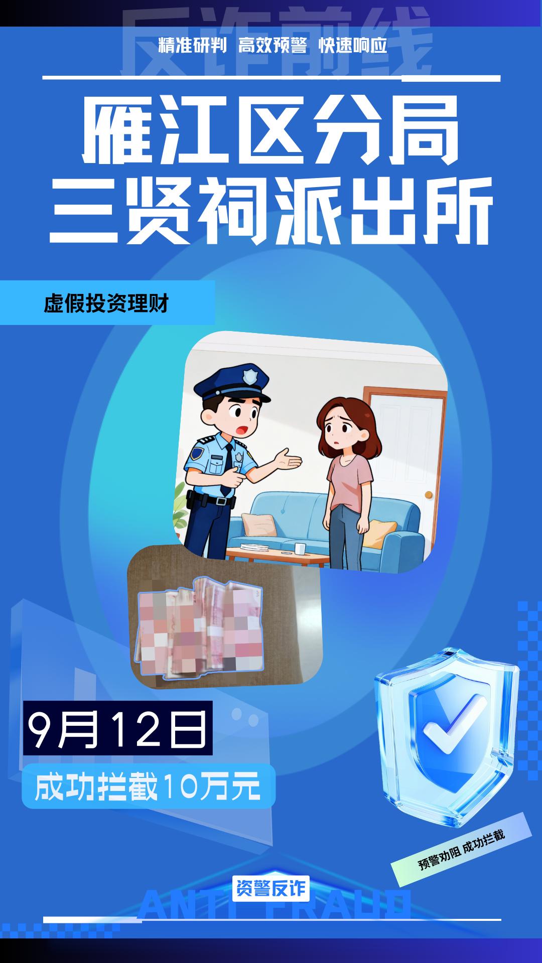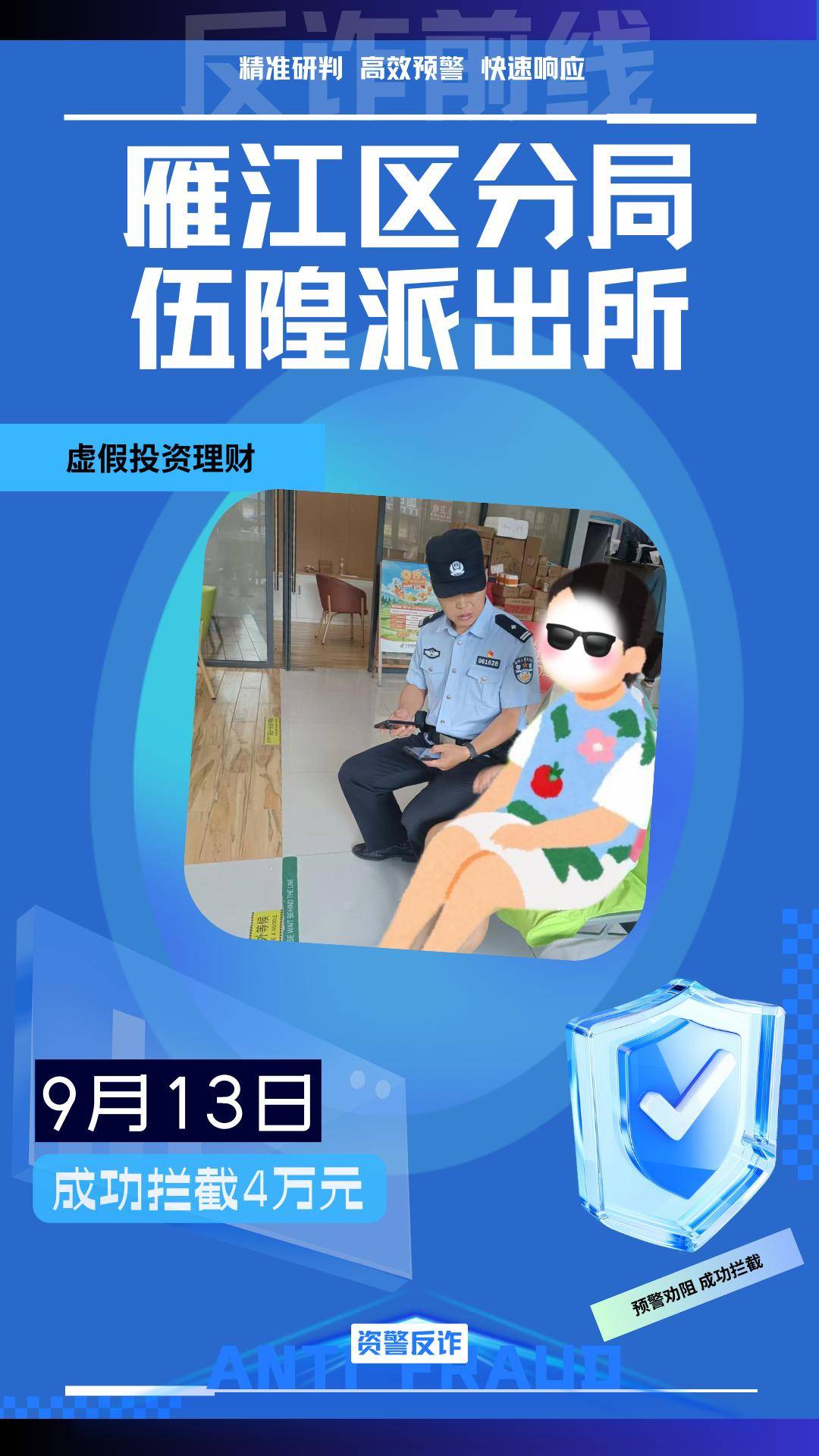9月16日,记者从资阳市公安局获悉,近期,资阳公安连续成功拦截5起诈骗案件,成功守住20余万,紧急护住群众“钱袋子”。