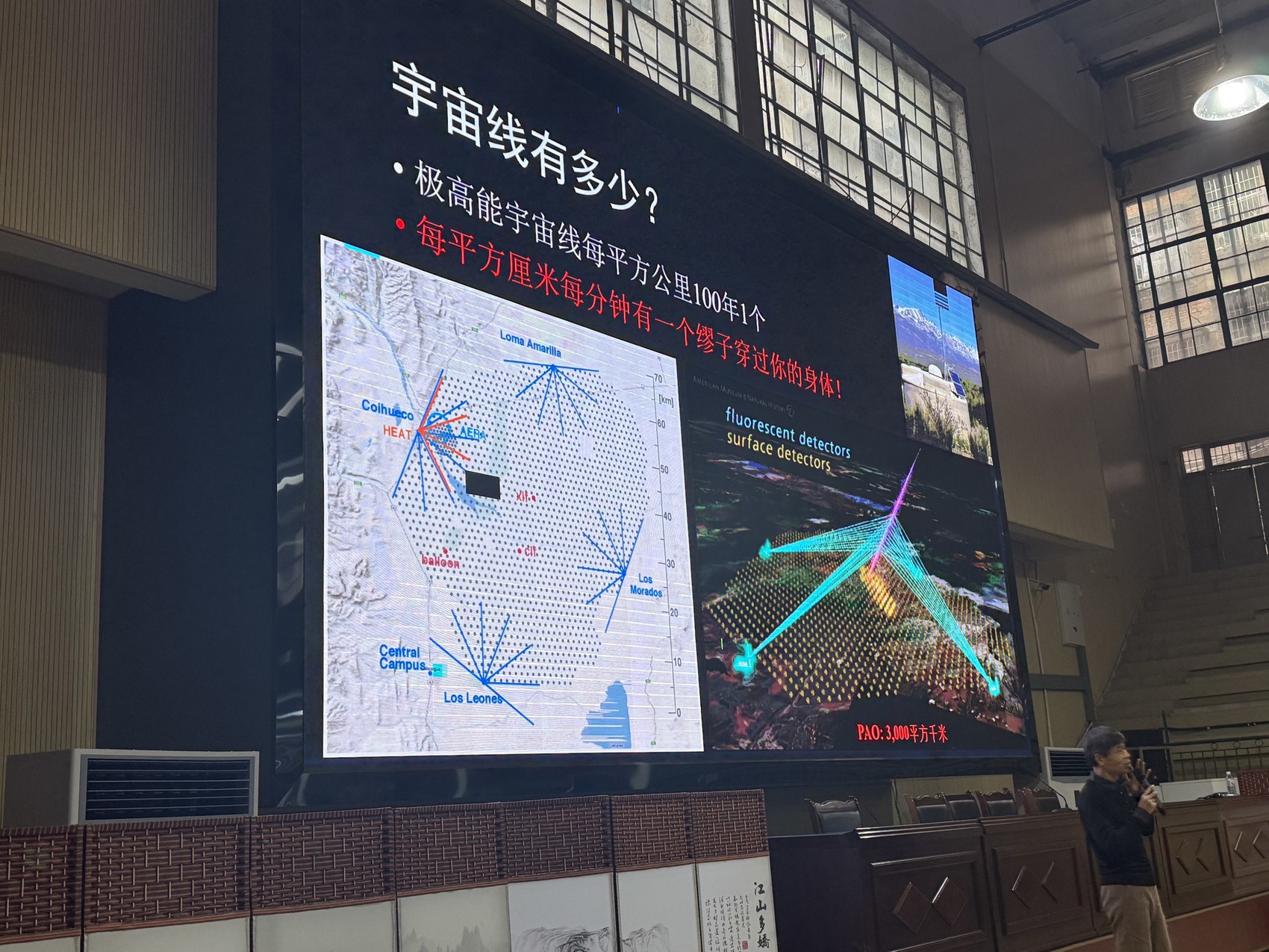 “每平方厘米,每分钟,都有一个缪子穿过我们的身体,大家能想象吗?”10月23日,在资阳市雁江一中雁翔馆内,中国科学院高能物理所研究员,中国科学院大学教授、博士生导师何会海以“来自宇宙的粒子炮弹”为主题,为同学们带来一场兼具科学性与趣味性的科普讲座。