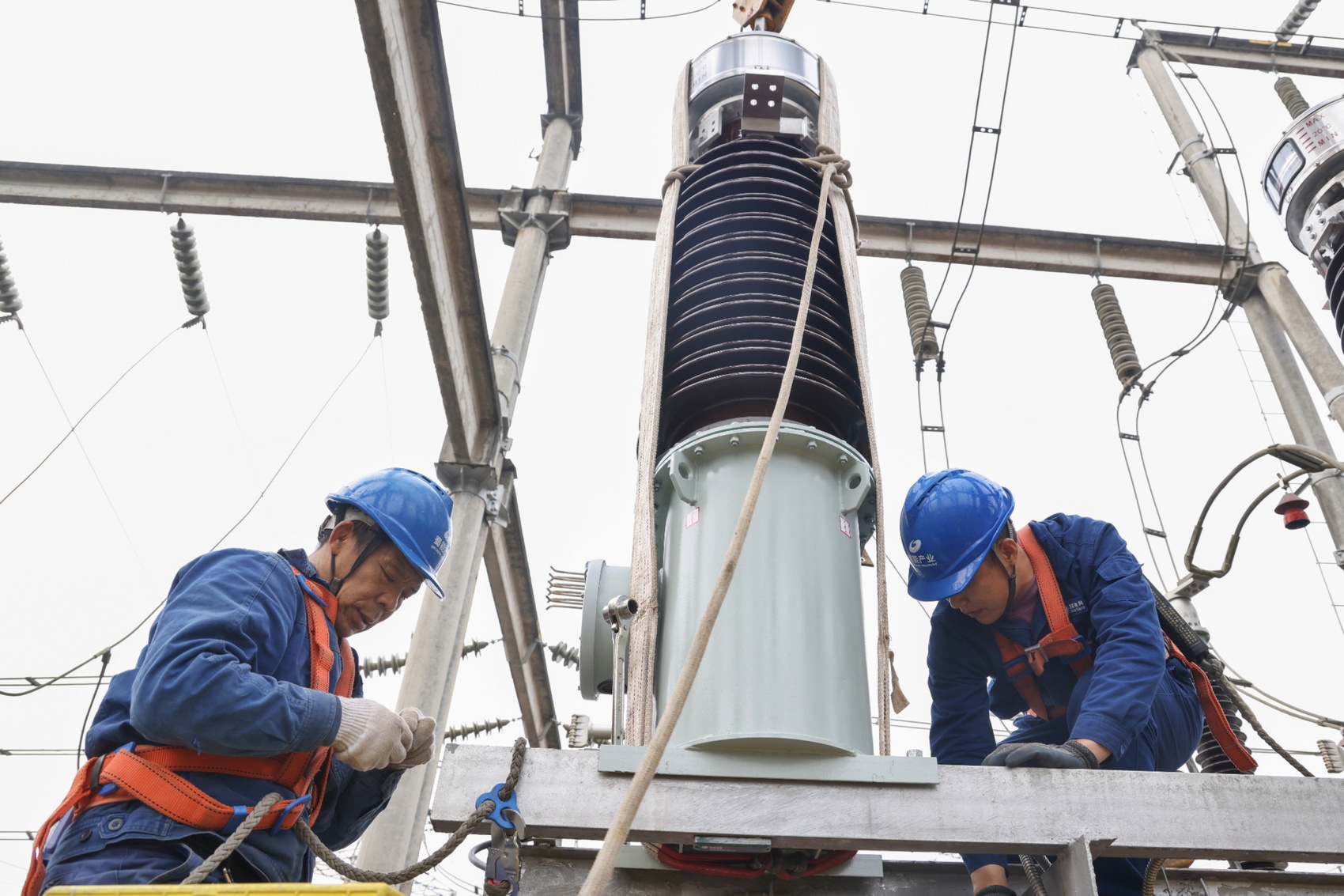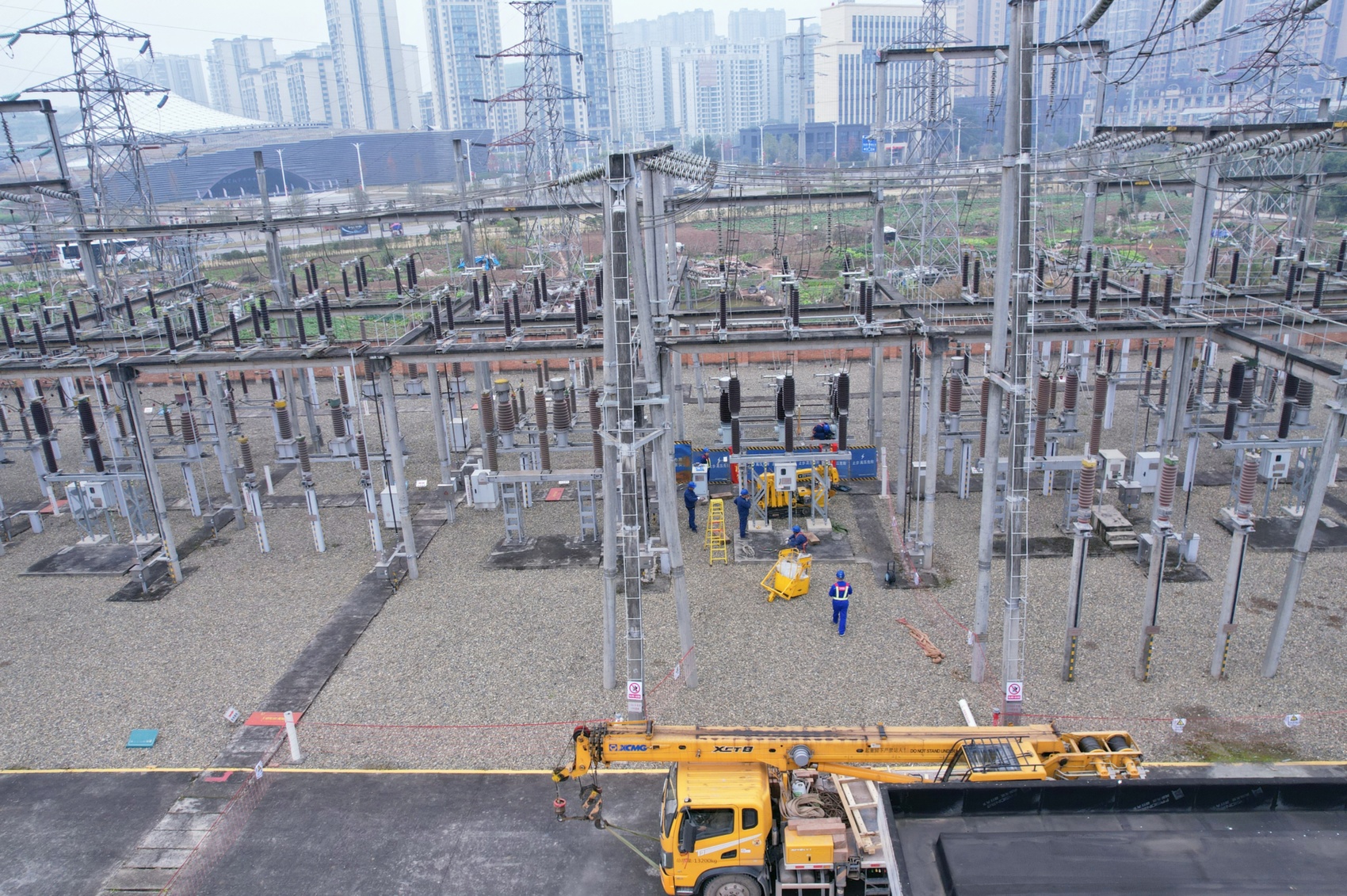 12月2日,在资阳市安岳县220千伏广惠变电站内,国网资阳供电公司工作人员正在进行110千伏电流互感器更换作业。此次待更换设备自1997年投运,已连续运行28年。