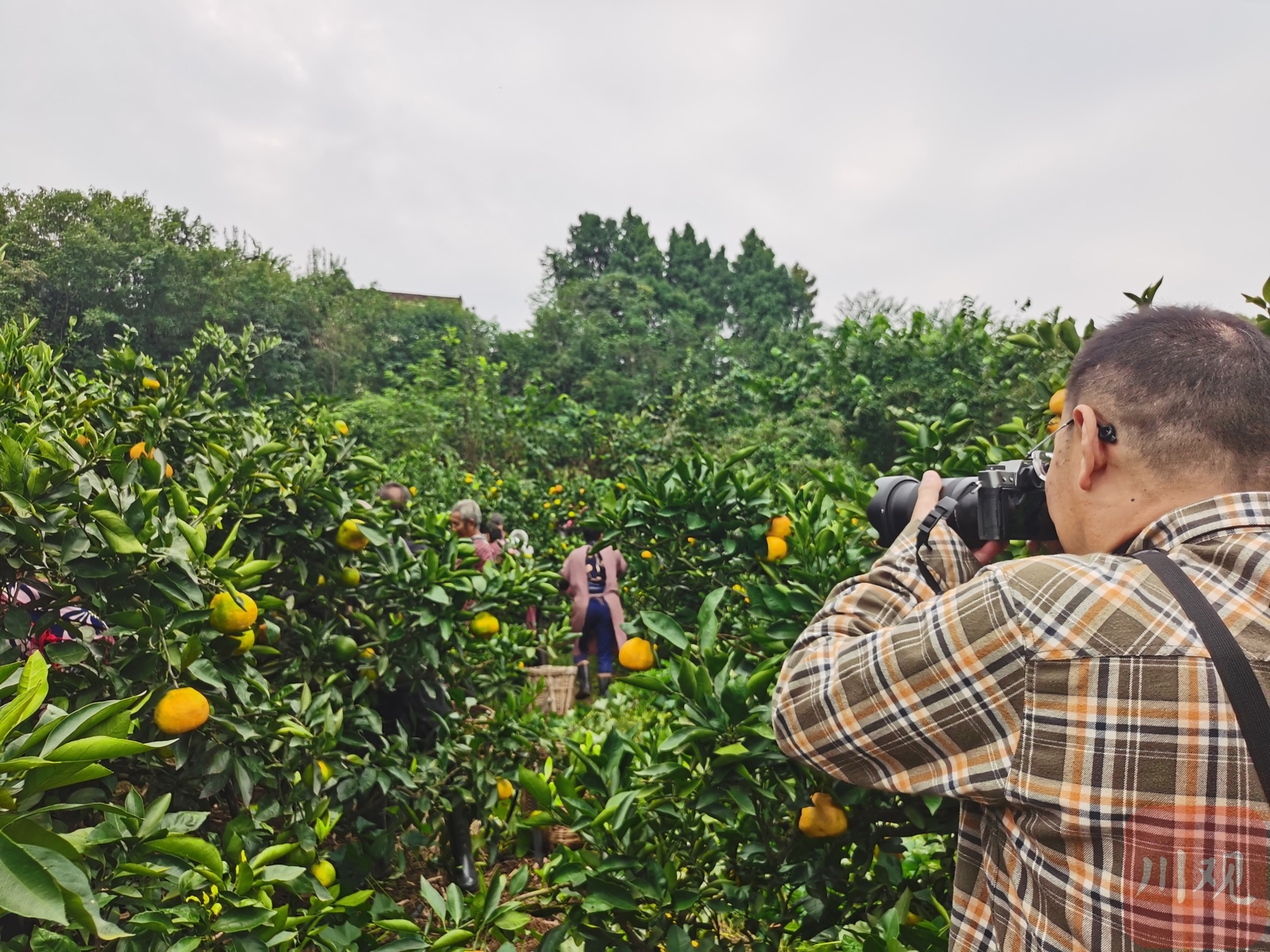 四川在线资阳频道消息(资阳观察 杨蜀丹)10月18日,雁江区“蜀人原乡 蜜柑飘香”文旅宣传采风活动走进丰裕镇,由10余家媒体和网络达人组成的采风团,用镜头记录丰收场景。