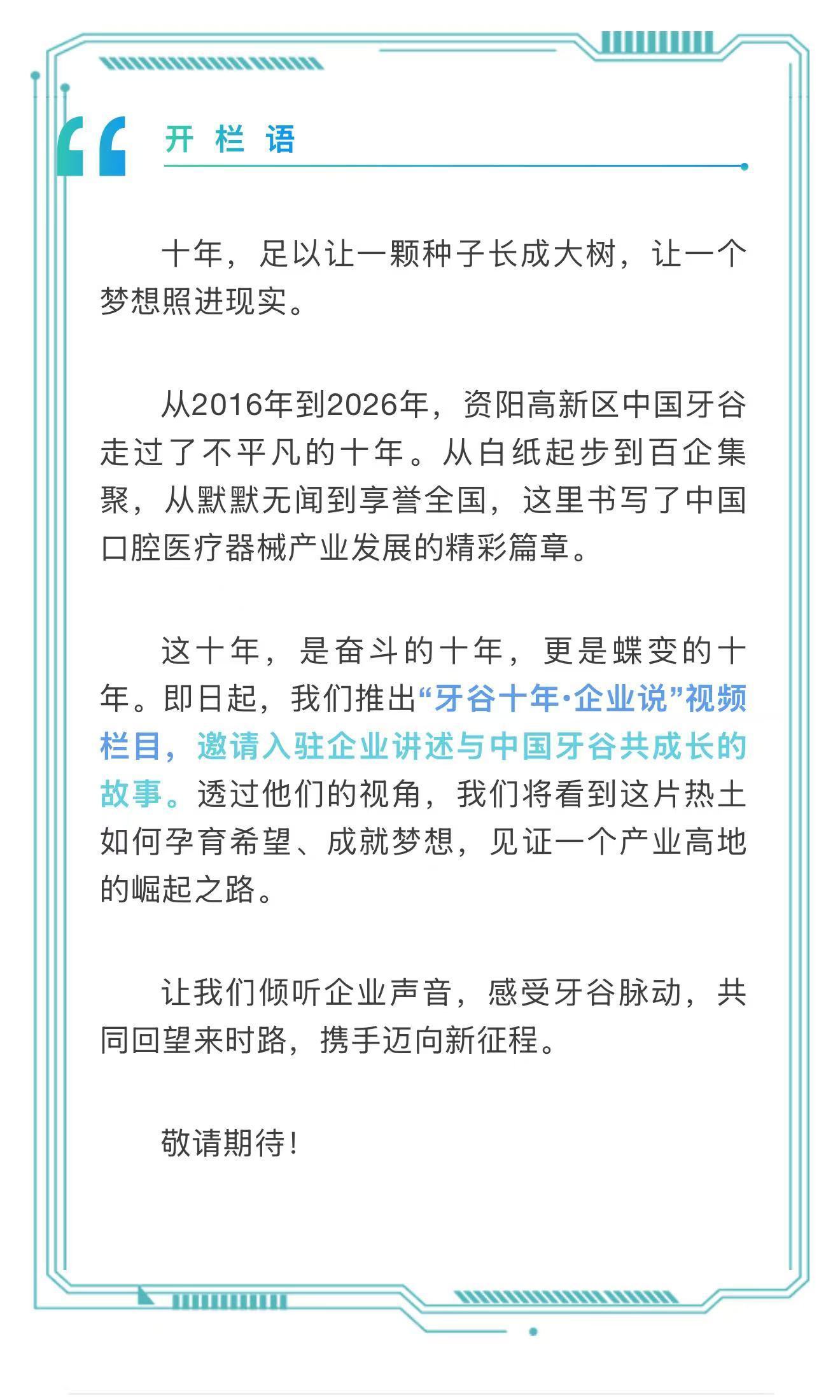 中国牙谷 十年蝶变|牙谷十年•企业说①