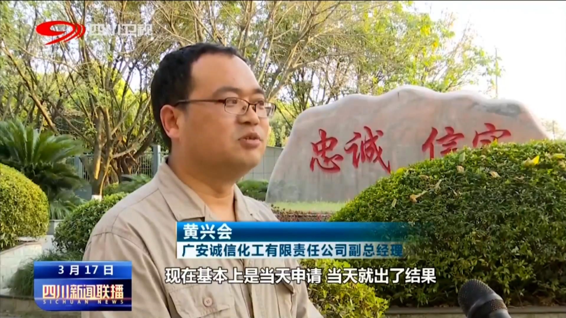 广安诚信化工有限责任公司副总经理 黄兴会:以前因为距离的原因,我们在产品的检验检疫上申请了当天出不了结果,现在基本上是当天申请当天出结果。