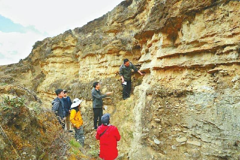 考古人员在皮洛遗址现场进行地质考察。 四川省文物考古研究院供图