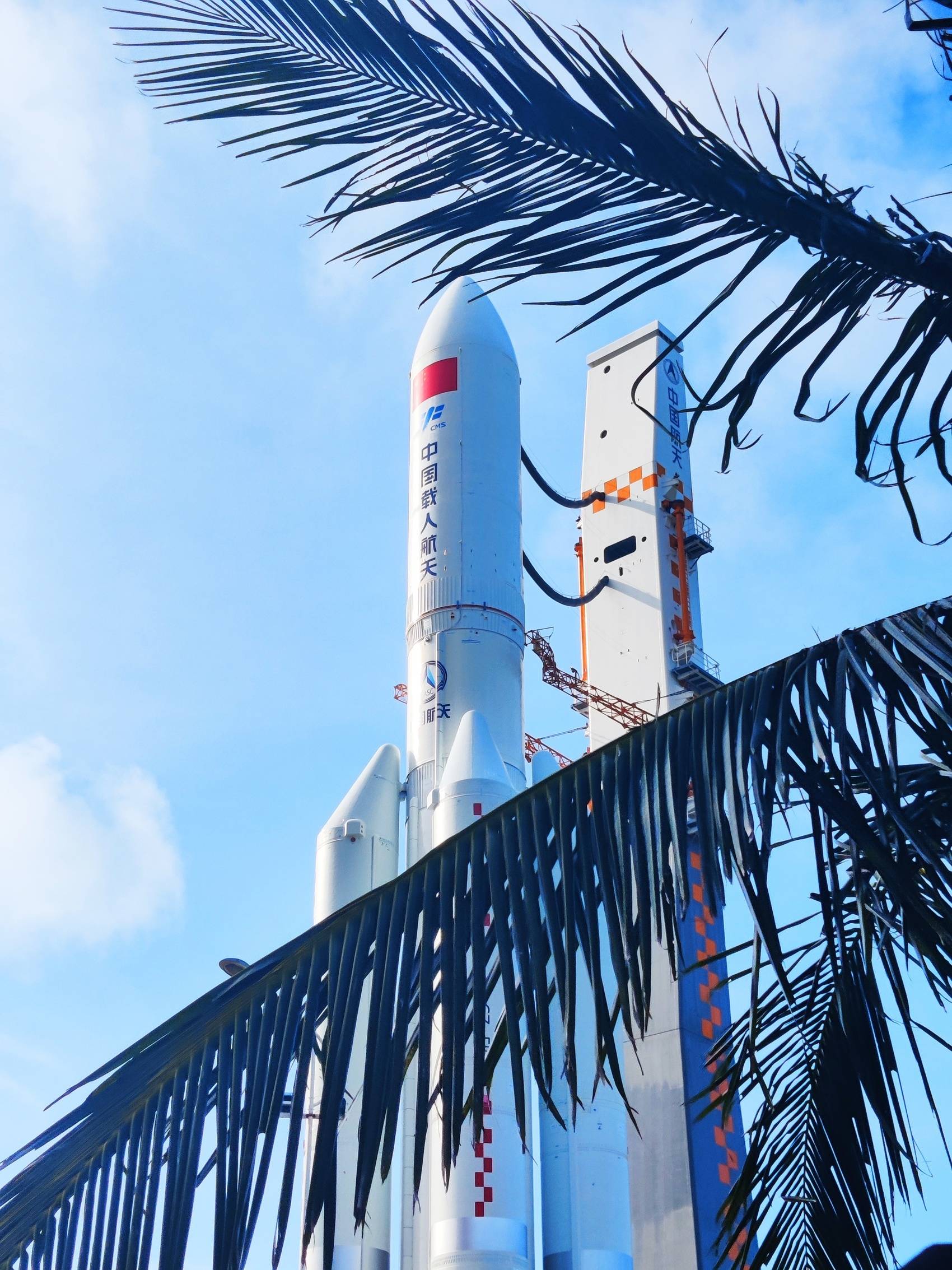 中国航天科技集团有限公司第七研究院第七设计部试验队员与火箭同行于转运轨道。