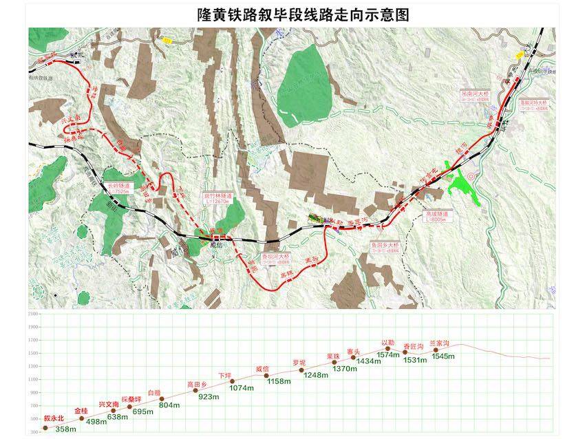 隆黄铁路叙毕段海拔图。成都铁路供图