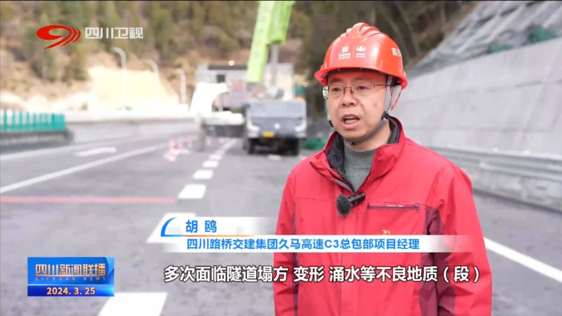 四川路桥交建集团久马高速C3总包部项目经理 胡鸥:多次面临隧道塌方、变形、涌水等不良地质段,我们提升隧道施工机械化程度,提升工序的质量和效率,安全顺利保障通车目标的实现。