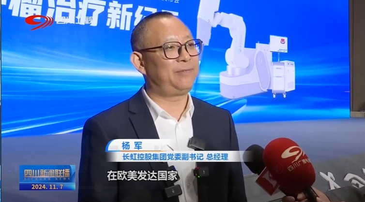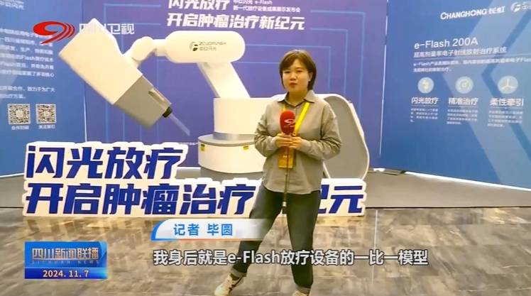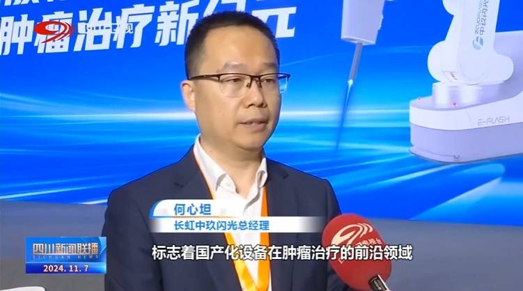 长虹控股集团党委副书记、总经理 杨军:在欧美发达国家放疗是作为肿瘤治疗的一个最主要手段,在我国实际上患者的覆盖率只有23%左右,究其根本原因还是传统的放疗主要存在毒副作用大、治疗的周期长,然后费用比较高。中玖闪光这个放疗产品,它是将治疗时间缩短到毫秒级,并大幅地降低这个毒副作用。