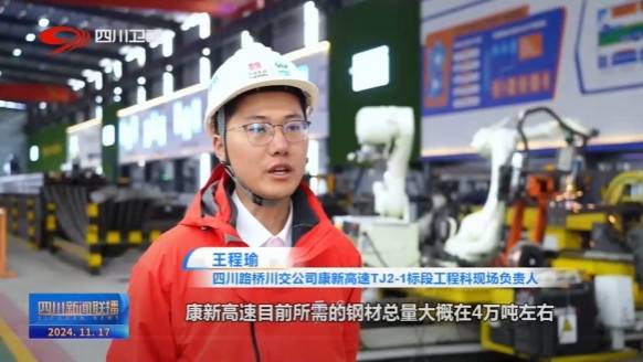 四川路桥川交公司康新高速TJ2-1标段工程科现场负责人 王程瑜:康新高速目前所需的钢材总量大概在4万吨左右,通过自动化产线,加工中心目前每个月可以生产1000吨左右的钢材,可以完全保障所有工区的正常生产节奏。