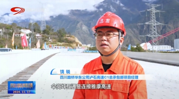 四川路桥华东公司泸石高速C1总承包部项目经理 饶锐:伞岗坪互通是连接雅康高速和泸石高速的一个枢纽互通,整个项目施工难度相当大,目前,已达到90%的施工进度,预计在明年4月份左右建设完成。