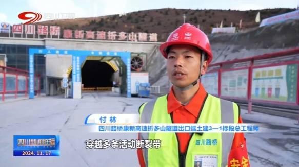 四川路桥康新高速折多山隧道出口端土建3—1标段总工程师 付林:隧道地质条件极其复杂,穿越多条活动断裂带。建设条件极其困难。隧道的贯通将打破川藏线“入关”瓶颈,原先翻越折多山需要约1.5小时的车程缩短至8至10分钟。