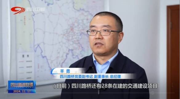 四川路桥党委副书记、副董事长、总经理羊勇:(目前)四川路桥还有28条在建的交通建设项目,现在正在全力以赴,打表推进。近期,四川路桥又获取了5条高速公路的投资建设任务,力争在年底实现先期开工点和临建工程的开工,为四川省稳经济、促增长做出我们四川路桥应有的贡献。